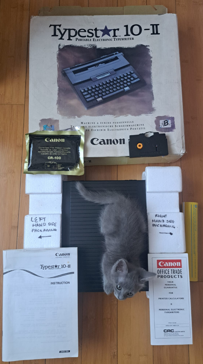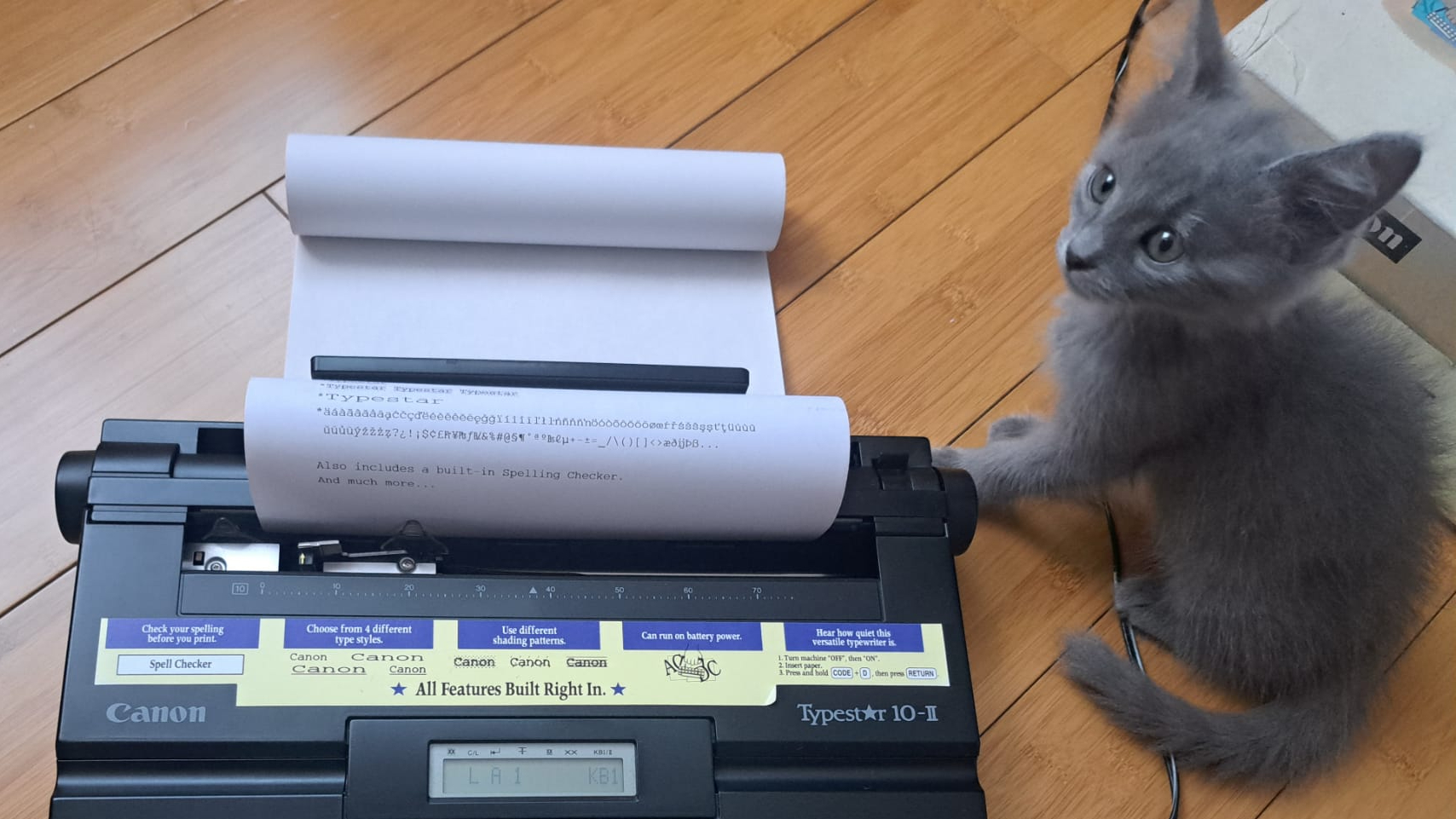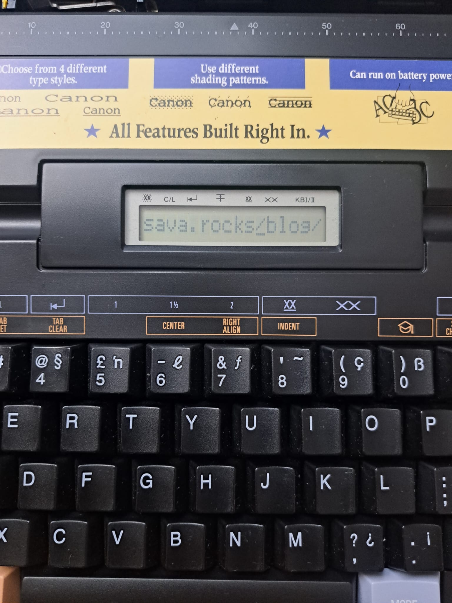 It's a little electronic typewriter from the late 80s. Runs on batteries 🔋 or plugged in 🔌, prints quietly on thermal paper (I use fax paper rolls) or normal paper if you have a ribbon cassette (as you can see if the photo above I have an almost empty ribbon cassette and a brand new still in original packaging cassette). Not exactly modern, but I'm finding it oddly useful, just like the little thermal printer my daughter received as a gift.